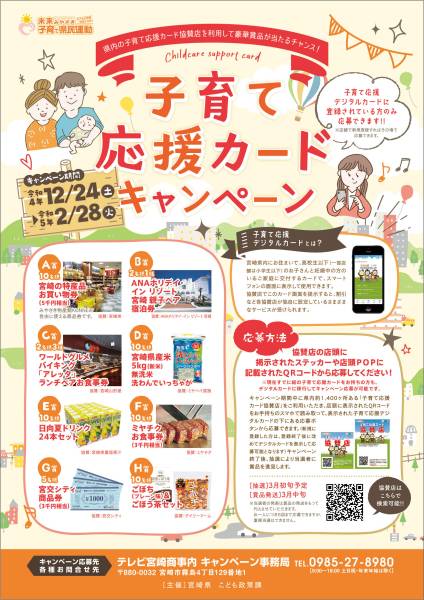 - 問合せ先:キャンペーン事務局(テレビ宮崎商事内)TEL:0985-27-8980 ※平日9:00~18:00