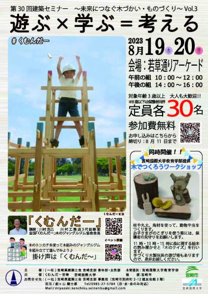 再度「宮崎県産材」を使った「くむんだー」のお披露目日が「8/19(土) 8/20(日)」に決まりました!