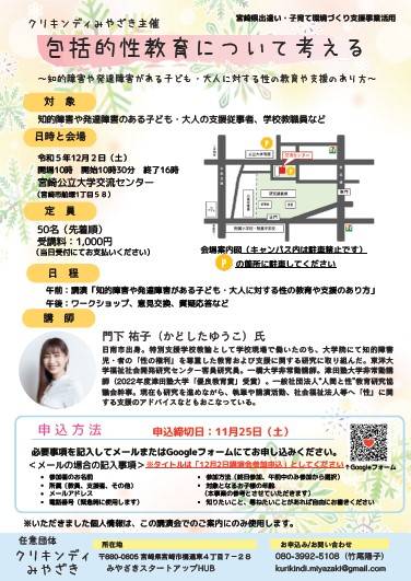 - 内容:午前 講演「知的障害や発達障害のある子ども・大人に対する性の教育や支援のあり方」