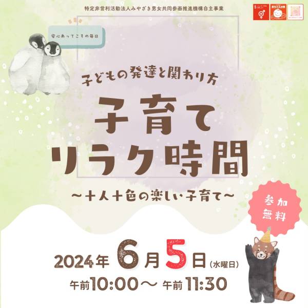 - 一時保育無料 ※要予約(5月29日締め切り) ※託児をキャンセルされる場合は、必ずご連絡をください。