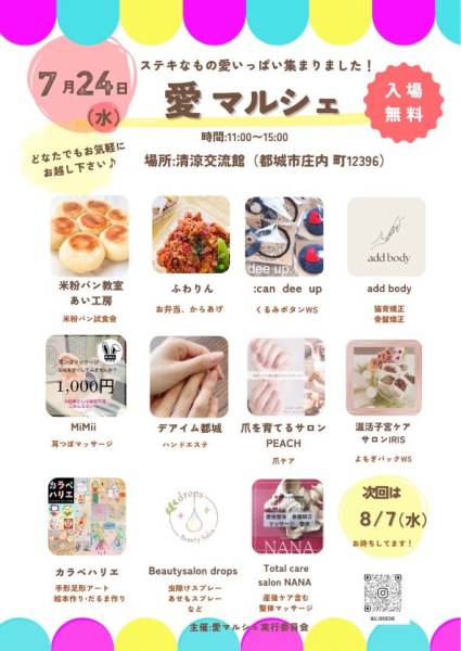- 米粉パンの試食会、ワークショップ、マッサージ、サロンなど10店舗が集まったマルシェとなります。