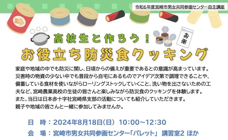 高校生と作ろう!お役立ち防災食クッキング 令和6年度宮崎市男女共同参画センター自主講座