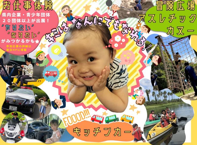 県内企業や青少年団体20団体以上が出展。将来の夢が見つかるかも!気になるお仕事をその場で体験できます。