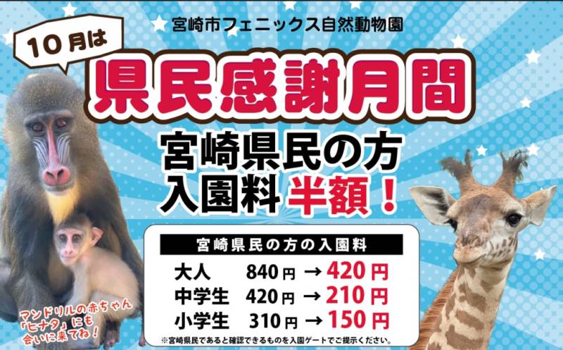 ※宮崎県民であると確認できるものを入園ゲートでご提示ください。