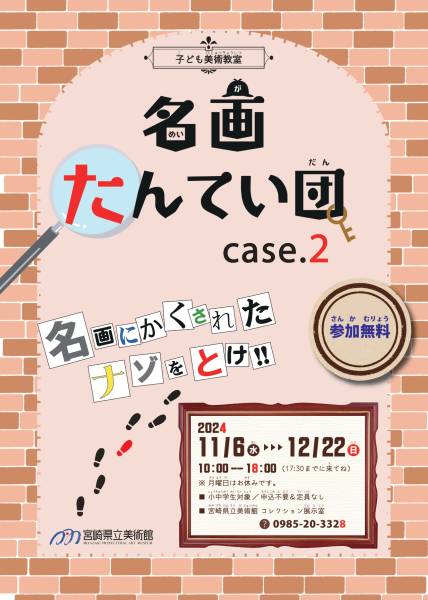 - 名画にかくされたナゾをとく子ども美術教室です。「たんてい手帳」を使って、コレクション展を一人でも,ともだちとでも、家族みんなでも楽しく観賞できます。