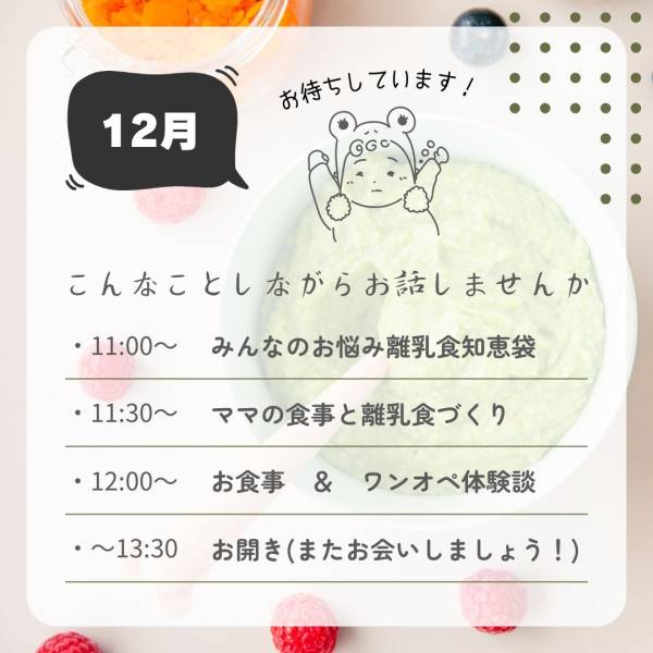 12月のテーマは離乳食&ママ、家族の食事を健康的においしく