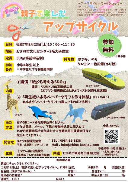 工作やものづくりが好きな方、SDGsやエコに興味のある方、夏の思い出作りに、お気軽にご参加ください!